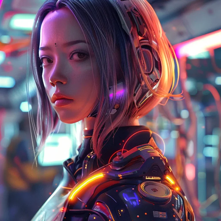 portrait futuristic female humanoid with advanced technology